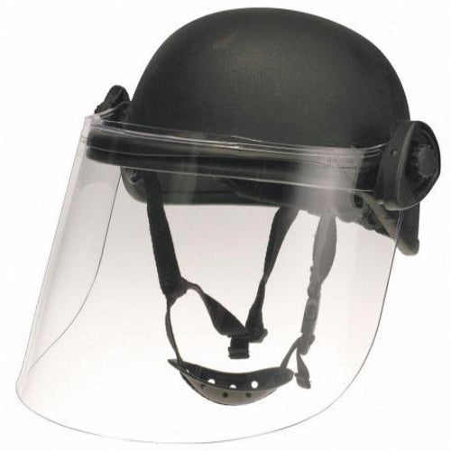 In riots, face shield systems with universal fit may be worn over a variety of helmets to give facial protection while on the job. There is a liquid barrier created by an integrated rubber seal located at the point of contact between the helmet and the shield. The shield may be released with a single wrist movement in either the stowed or deployed mode. Shield pivot and lock mechanisms may be relocated to either the right or left side of the shield to accommodate individual preferences. Compared to other protective helmets on the market, the distinctive heavy gauge shield with a thickness of 0.250” delivers unparalleled fit and performance thanks to its unusual thick gauge construction. Affixing it is simple and secure, and it may be removed with little difficulty if required. NIJ 0104.02 certification for police use has been obtained, and a National Stock Number has been granted for use by the federal government and military.
